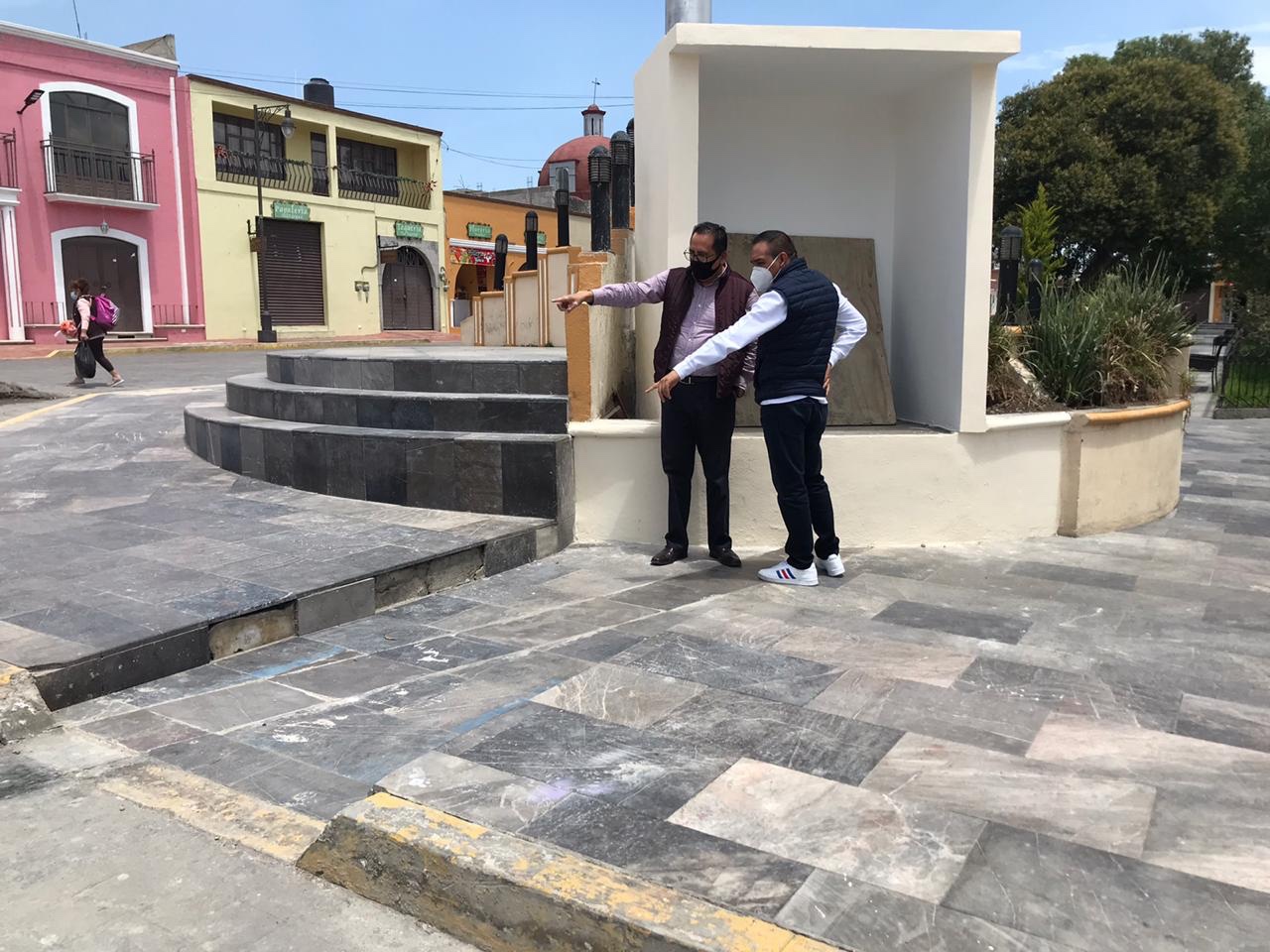 Acompañado de Francisco Gutiérrez Andrade, Director de Obras Públicas, iniciaron la supervisión de los trabajos en el centro de la población, lugar donde se construye la primera fuente danzante de la zona oriente de la entidad y la cual tiene un avance del 75 por ciento.