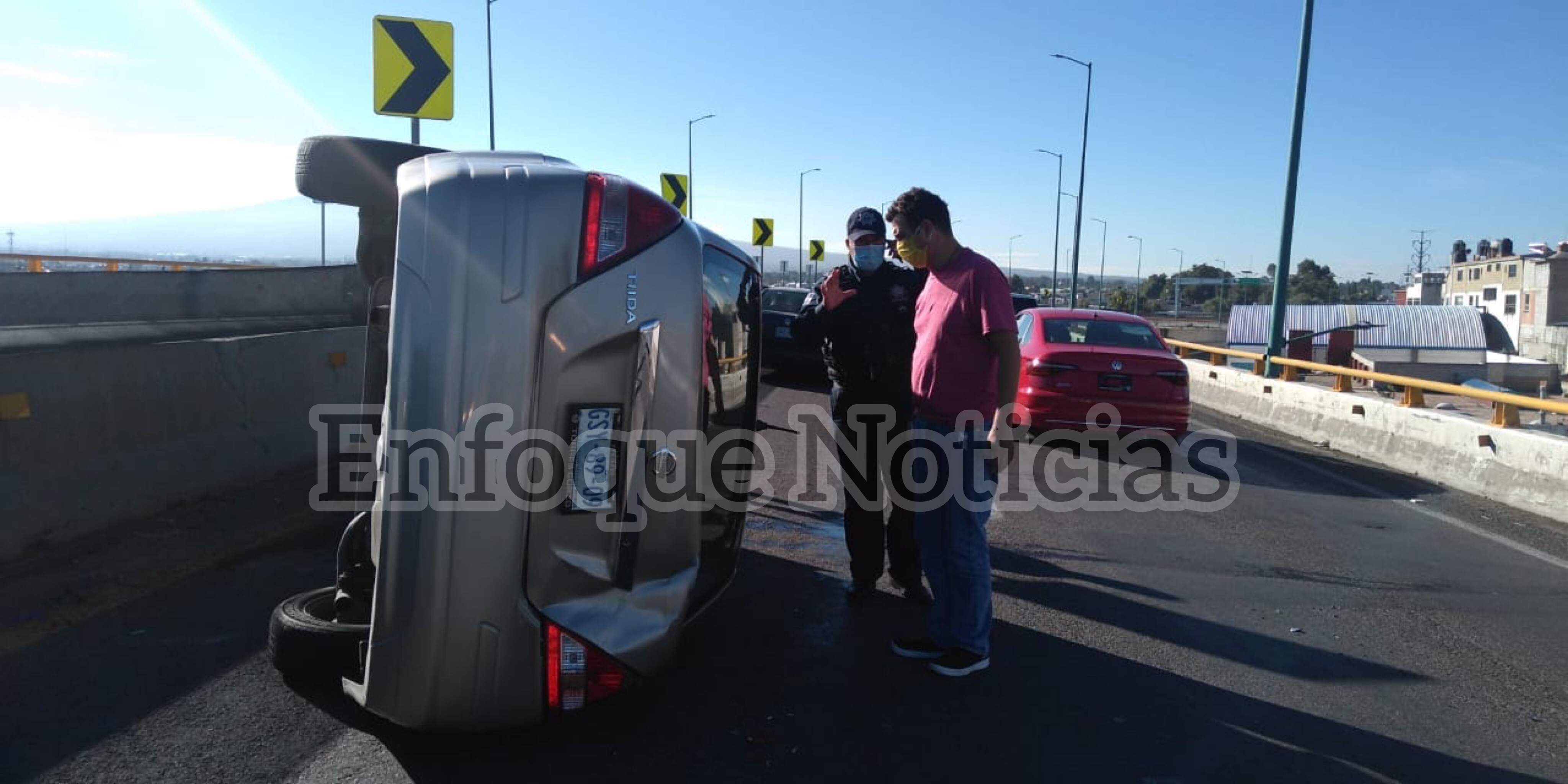 El incidente se registró con dirección a Puebla, en donde el Nissan Tiida color arena con placas de circulación GSY-8909 del estado de Guanajuato, quedó volcado en uno de sus costados.