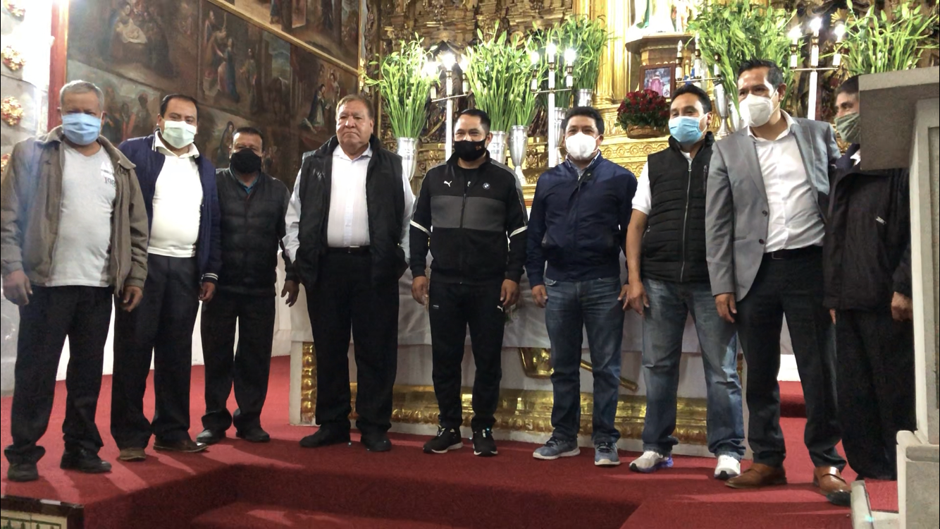 La fe católica motivó a Óscar Pérez Rojas y Rodrigo Cuauhtle Salazar, a hacerse dispuestos para donar una alfombra presbítero para la iglesia de Teolocholco.