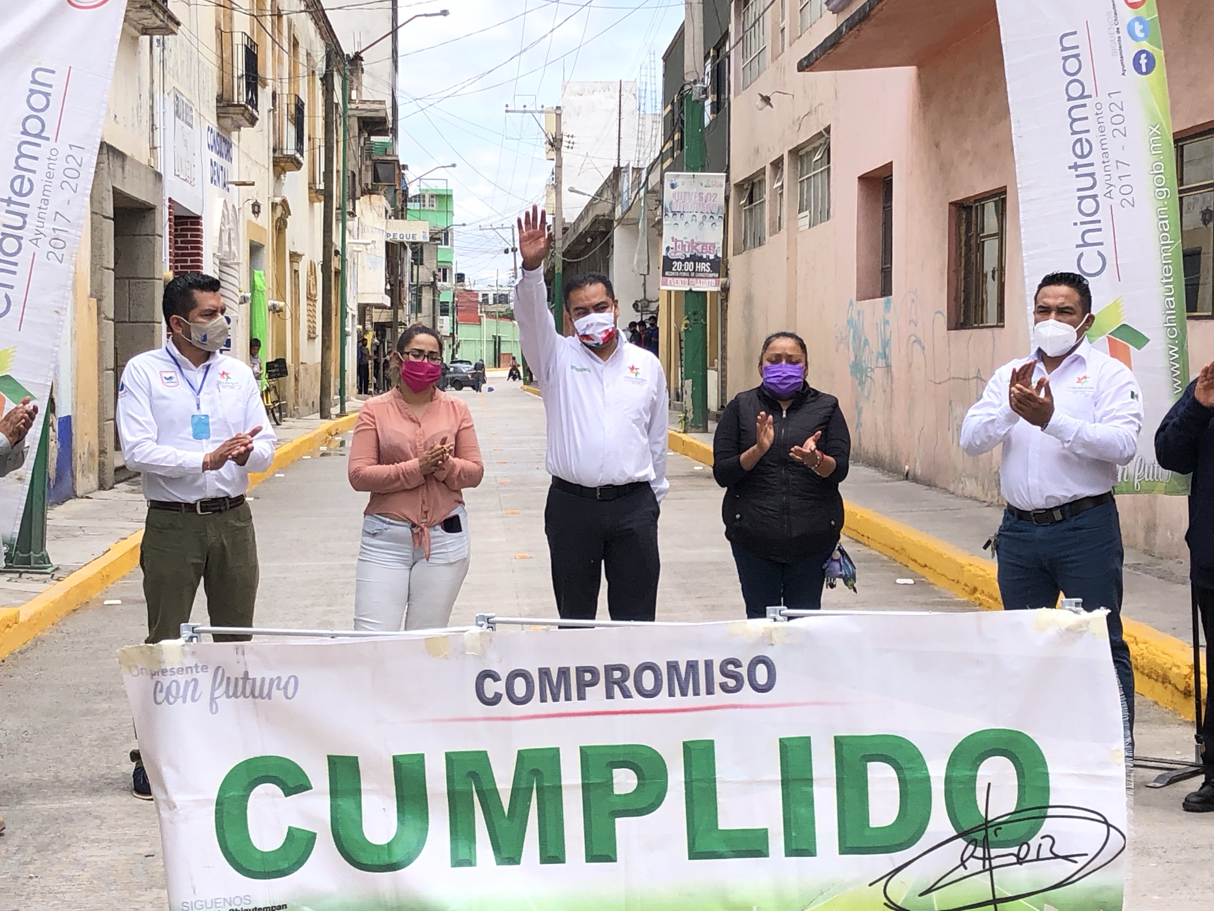 Con una inversión de 1.2 millones de pesos, procedentes de remanentes del 2019, el alcalde de Chiautempan, Héctor Domínguez Rugerio, realizó la entrega del pavimento de la calle Libertad en la cabecera municipal.