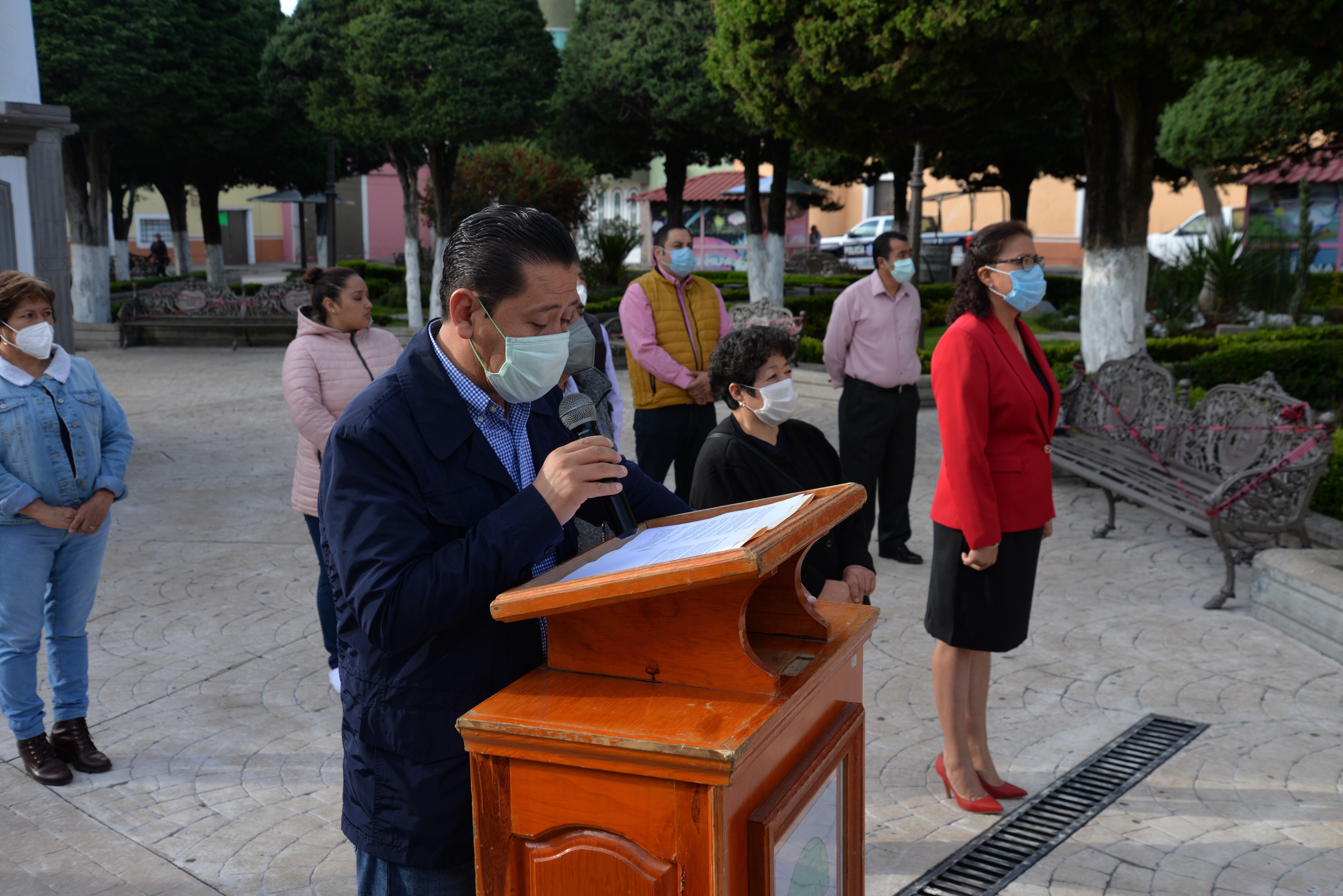 La colocación del Bando en el exterior de la Presidencia Municipal, ocurrió minutos después del término de la ceremonia de Izamiento al Lábaro Patrio, efectuado en el Parque Mariano Arista, para que posteriormente este mismo pliego, también fuera fijado en las oficinas de la Casa Ejidal.