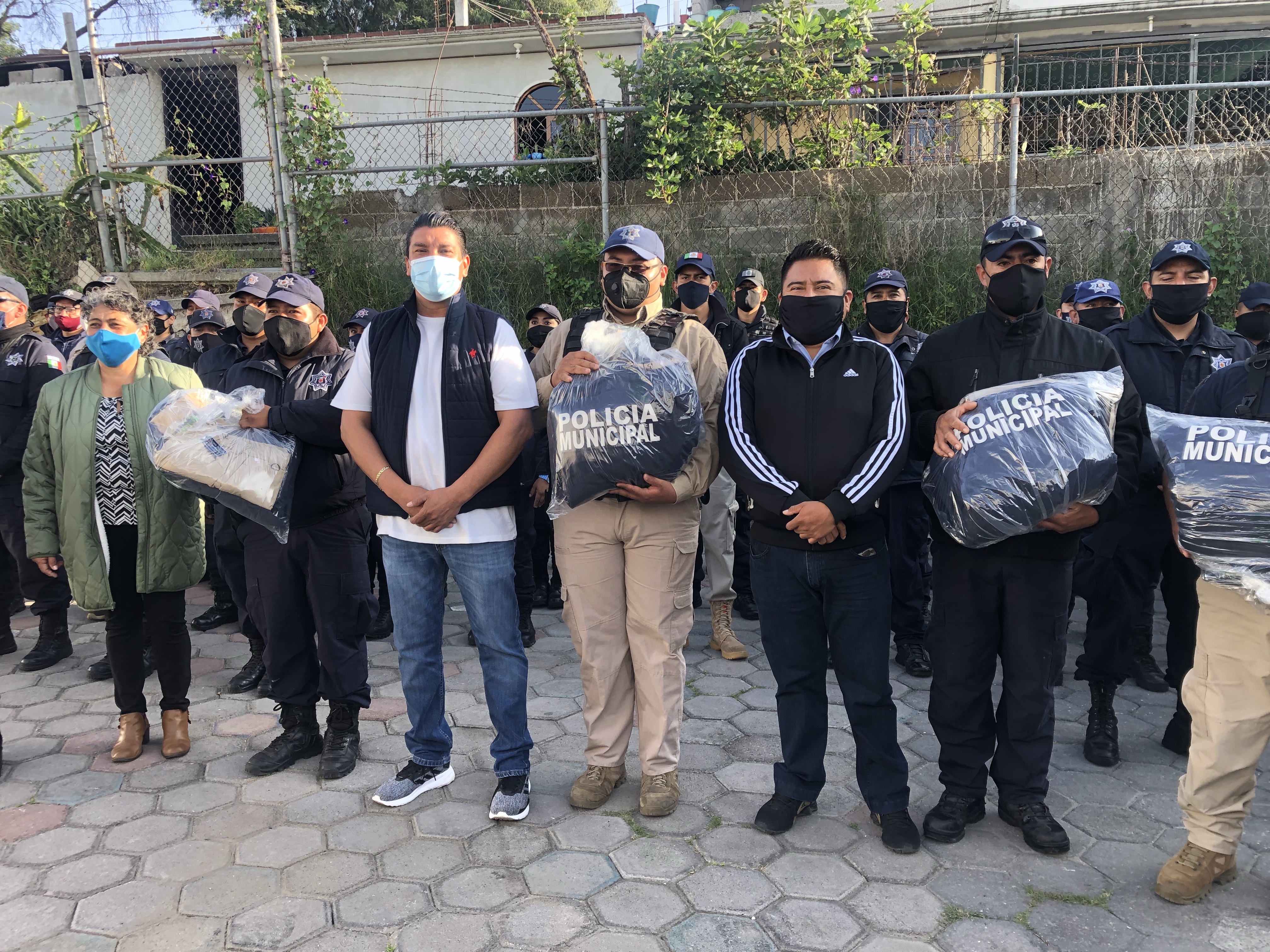 La entrega consiste en pantalones, playeras, chamarras, botas, gorras, en color caqui y azul, con una inversión de 261 mil 46 pesos pesos.