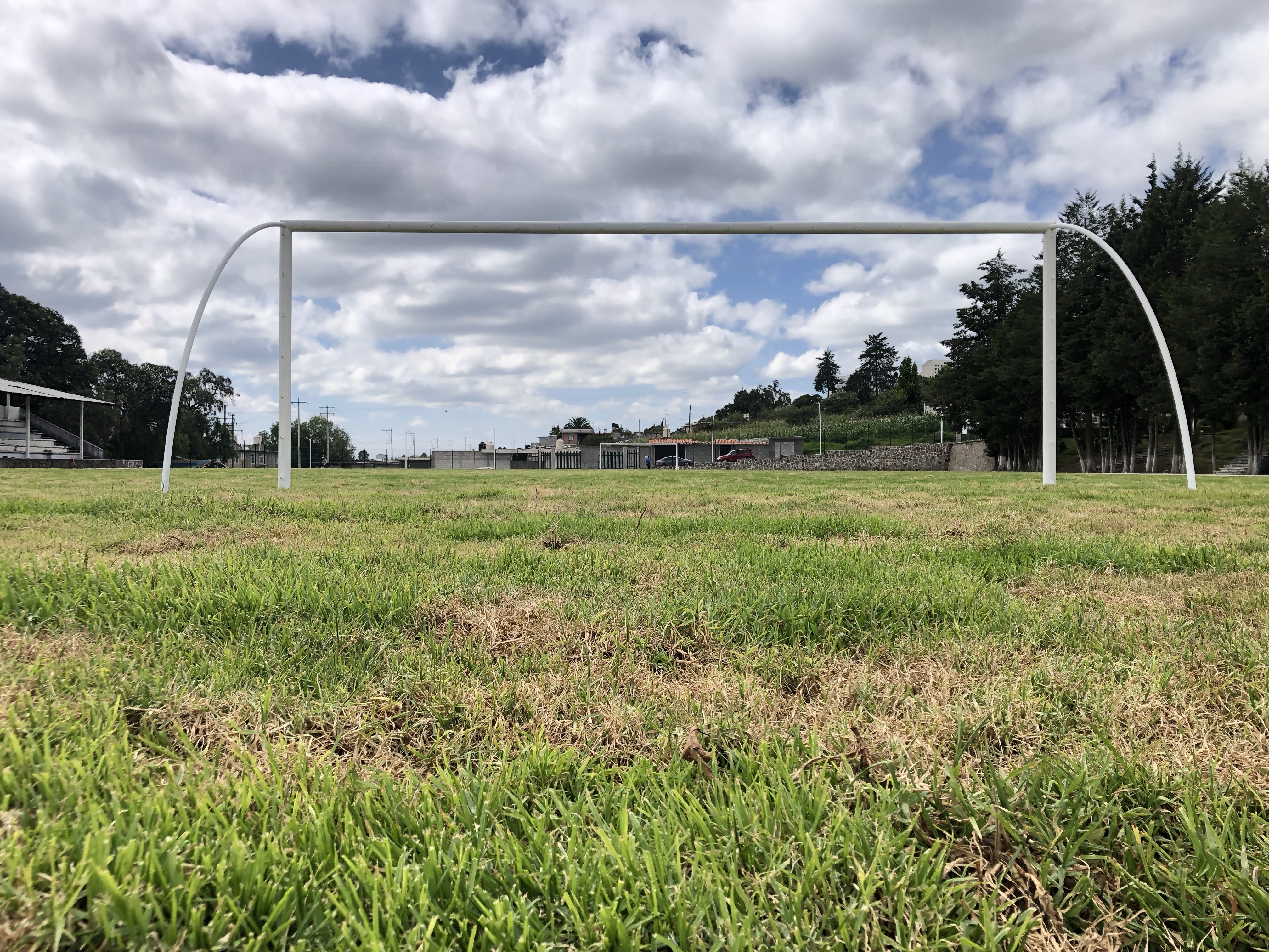 El campo también cuenta con riego de aspersión automatizado para el adecuado cuidado del césped.