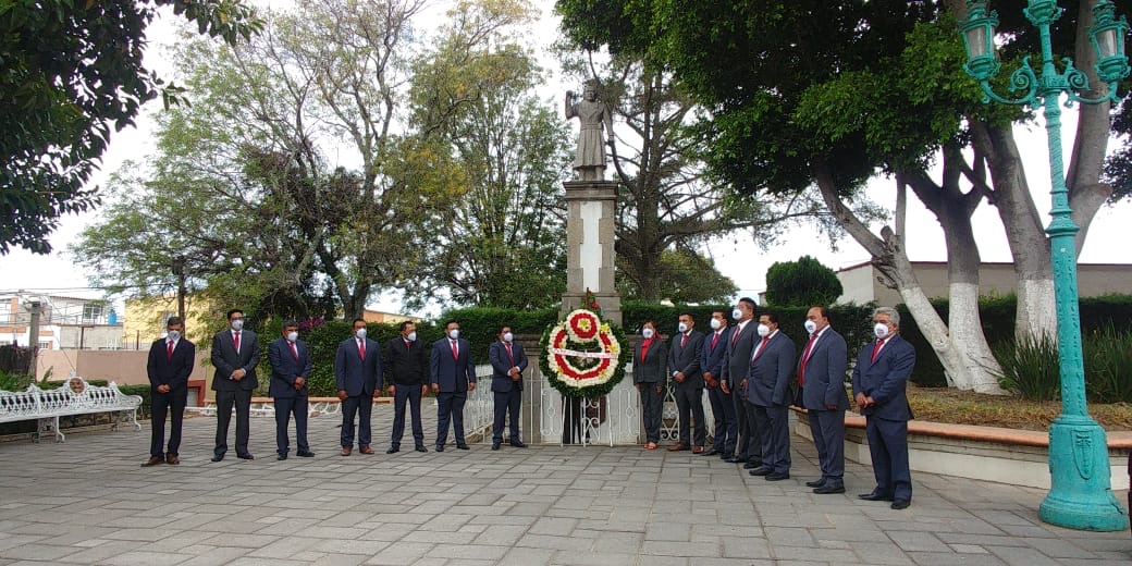 Al encabezar la ceremonia de izamiento de bandera y ofrenda floral en el monumento a Miguel Hidalgo, el alcalde de Panotla, Eymard Grande Rodríguez, pidió a los ciudadanos a conmemorar las fiestas patrias desde casa, ante el riesgo que implica la pandemia.