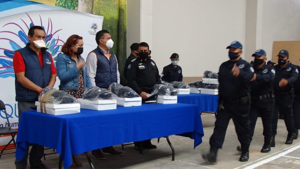 Con la finalidad de dignificar la labor de la policía municipal de Yauhquemehcan, el alcalde, Francisco Villarreal Chairez, entregó uniformes a elementos de la corporación.