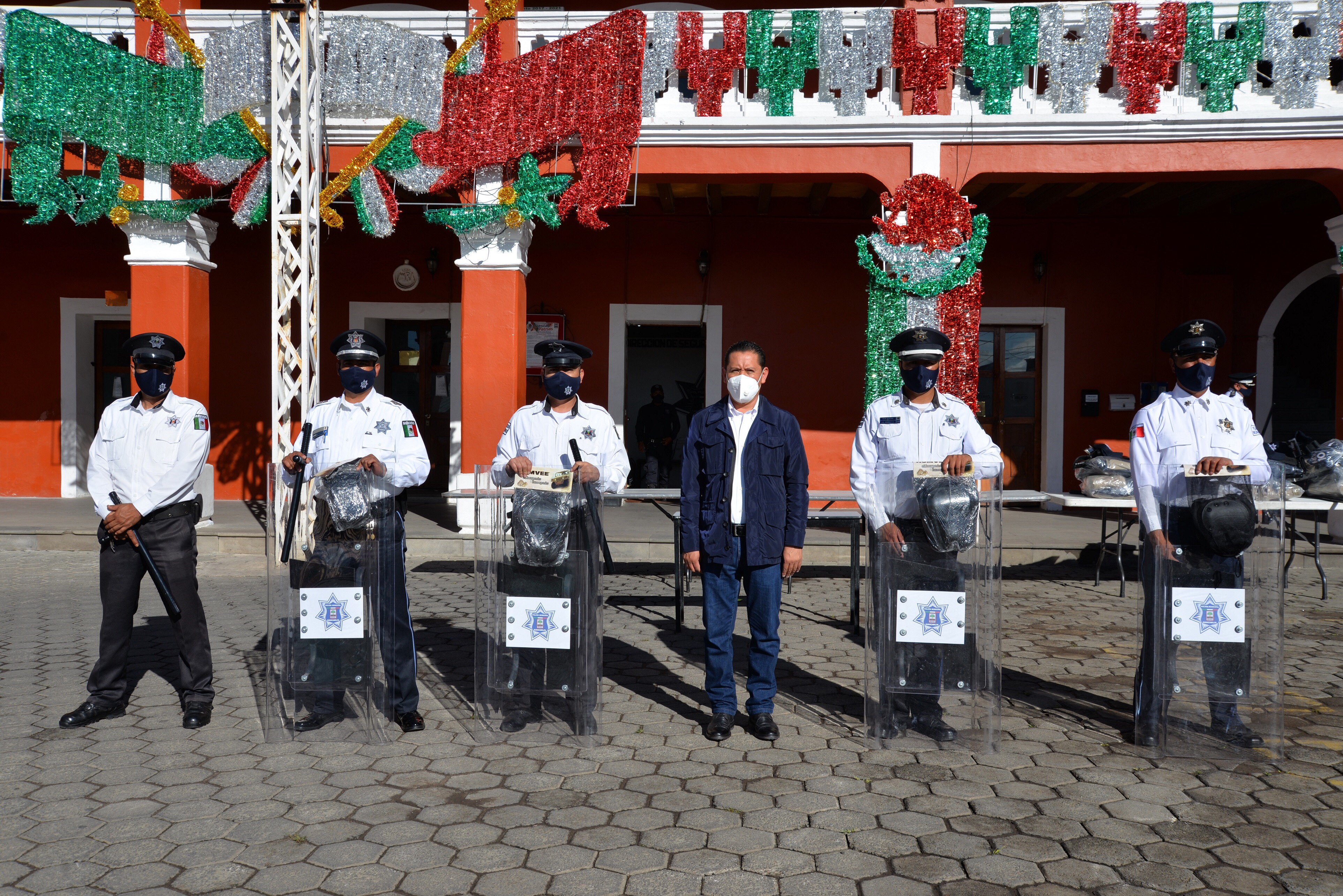 Durante la entrega de uniformes y equipo táctico a elementos de la Dirección de Seguridad Pública, el alcalde de Nanacamilpa, Víctor Hugo Sánchez Flores, pidió a los efectivos respetar a la ciudadanía y a turistas que visitan esta demarcación.
