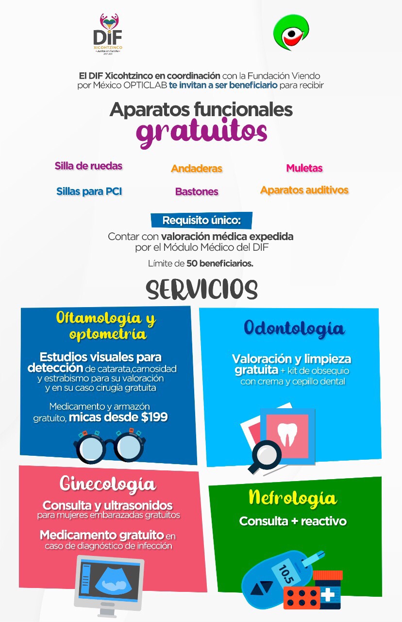 Con el objetivo de apoyar a las personas con alguna discapacidad, el Sistema Municipal DIF, coordinado por la presidenta honorífica Isabel del Pilar Badillo Tzontecomani y la Fundación Viendo por México OPTICLAB convocan a la población interesada en adquirir aparatos funcionales gratuitos.