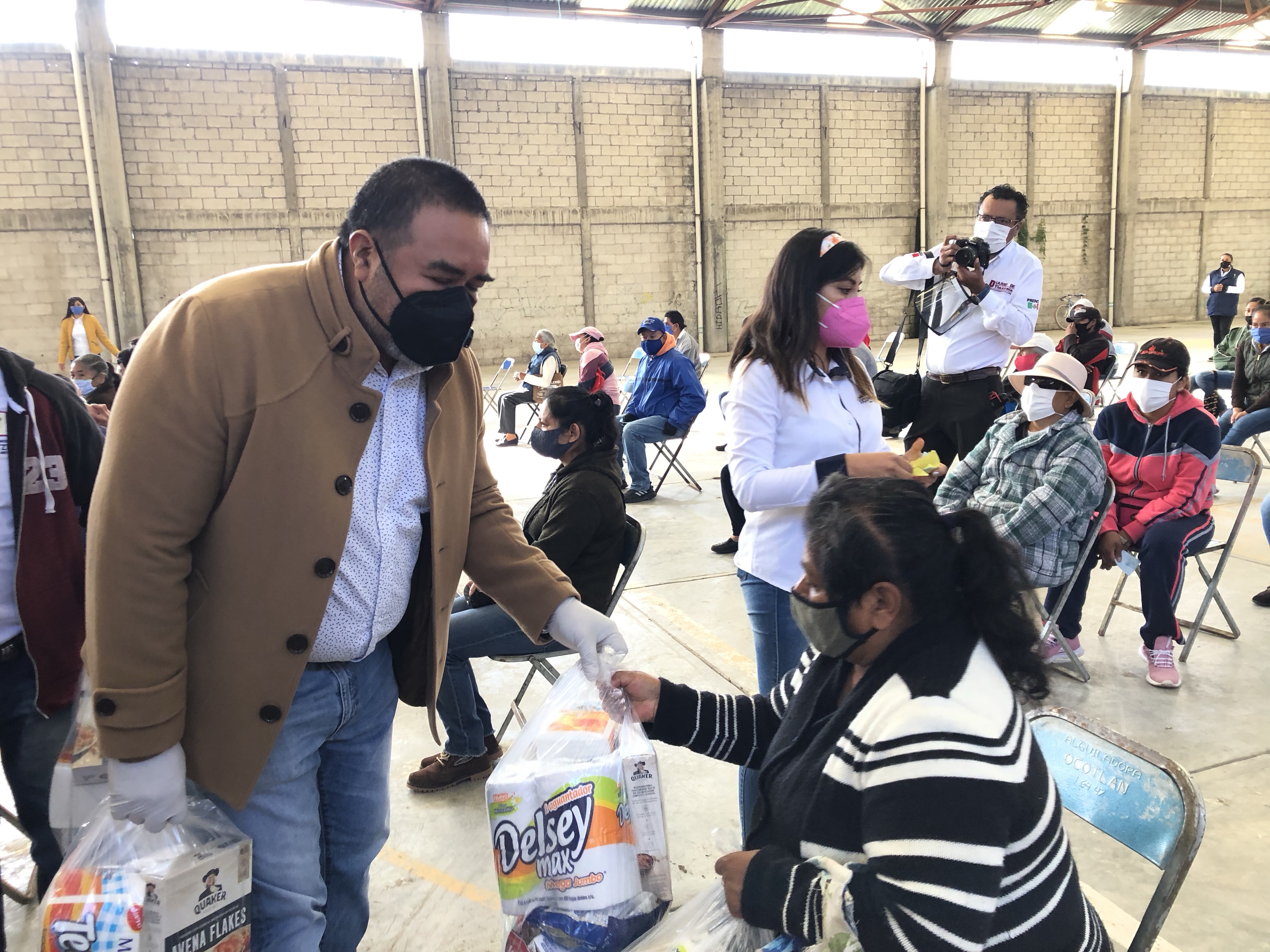 Las despensas fueron integradas con productos de la canasta básica para apoyar la economía familiar y contribuir a mejorar la alimentación de adultos mayores, personas discapacitadas, madres solteras y otros grupos vulnerables.