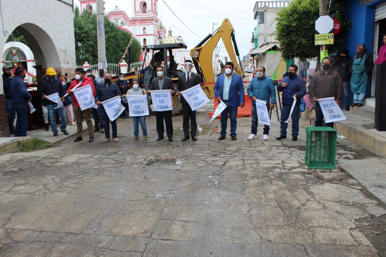 Edil de Tepetitla de Lardizábal, Carlos Fernández Nieves y diputado local, Miguel Ángel Covarrubias Cervantes, acompañados de los integrantes del Honorable Cabildo, realizaron el Banderazo de Inicio de Obra en la Xicoténcatl de la cabecera municipal.
