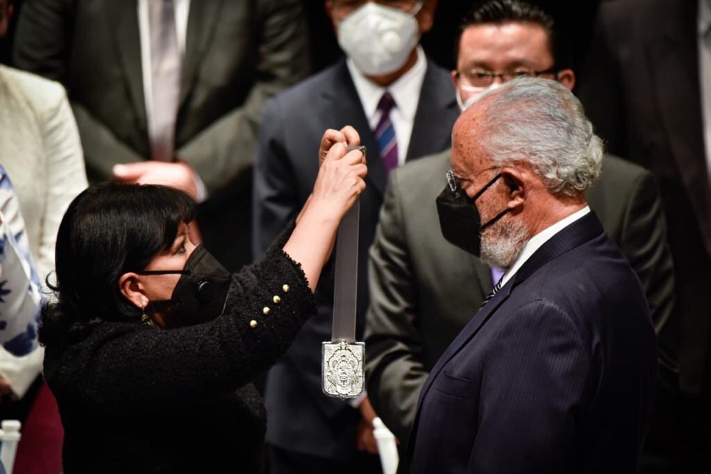 En una emotiva ceremonia realizada en el Teatro Xicohténcatl, con reducido aforo y atención a las medidas sanitarias, la presidenta municipal de Tlaxcala, AnabellÁvalos Zempoalteca en presencia del secretario de Gobierno, Aarón Pérez Carro en representación del gobernador Marco Antoni Mena Rodríguez, así como del síndico, regidores, presidentes de comunidad y delegados, entregó el distinguido galardón al ex diputado federal.