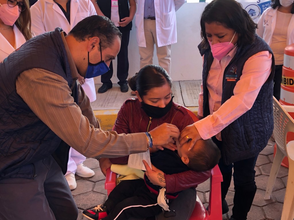 El evento fue inaugurado por el primer regidor, Alfredo Escamilla en representación del alcalde Francisco Villarreal Chairez, quien aplicó la primera dosis de vacuna a un infante.
