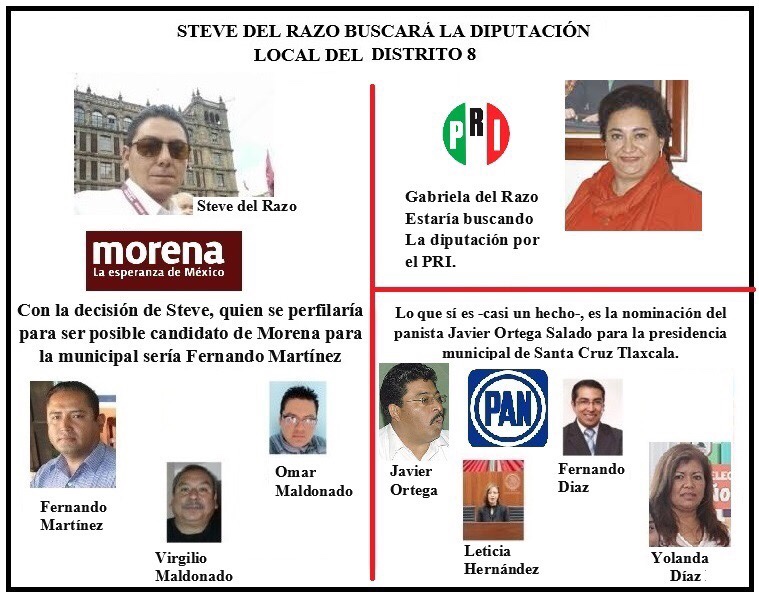 Por otro lado, en los últimos días se acrecentó el rumor de que Steve del Razo (servidor de la nación) estaría buscando la nominación a la candidatura para la diputación local por el Distrito VIII en las siglas del Partido Movimiento de Regeneración Nacional (Morena) y que contempla 4 municipios, Santa Cruz Tlaxcala, Amaxac de Guerrero, San Pablo Apetatitlán y Contla de Juan Cuamatzi, dejando a un lado su aspiración a la presidencia municipal como se había venido mencionando.