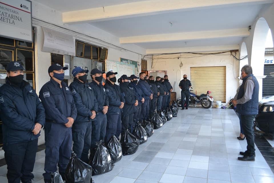 Con la finalidad de de de que los elementos de seguridad pública de Ayometla realicen su labor de manera objetiva y en las mejores condiciones, el Alcalde Franco Pérez Zempoalteca acompañado de la Regidora Catalina Gutiérrez Castillo, entregaron uniformes a los policías municipales.