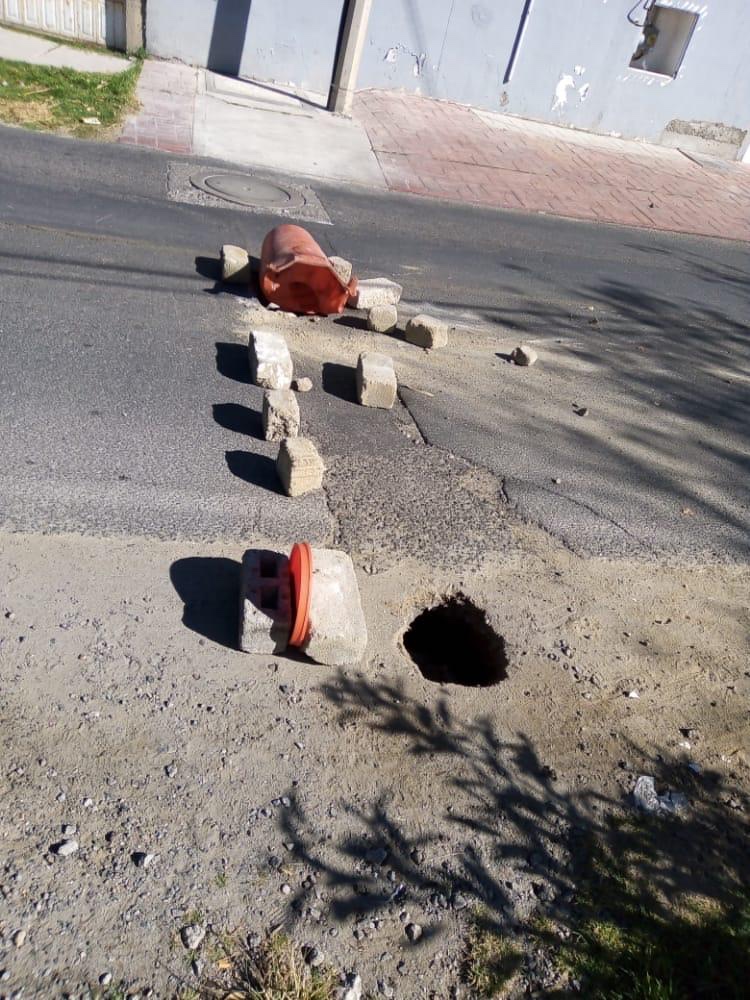 Ante la presunta indiferencia de Bladimir Zainos, los vecinos prefirieron colocar blocks para prevenir a quienes pasan por este lugar, señalaron que son 3 días los que llevan con esta situación, que no causa el mínimo interés al edil para dar solución.