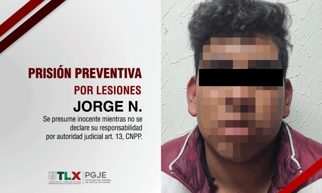 Los datos de prueba presentados por el Agente del Ministerio Público adscrito a la Procuraduría General de Justicia del Estado (PGJE), fueron determinantes para que un Juez de Control decretara prisión preventiva oficiosa a Jorge N., por el delito de lesiones calificadas en victimización de una mujer en el municipio de Xaloztoc.