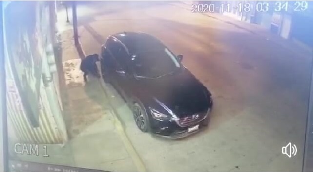 Alrededor de las 3:34 horas, a los maleantes no les importó que hubiera cámaras de seguridad encendidas y una vez sin vigilancia de los vecinos ni de seguridad pública, se apuraron para quitar y llevarse la llanta trasera derecha de un vehículo Mazda tipo CX-3.