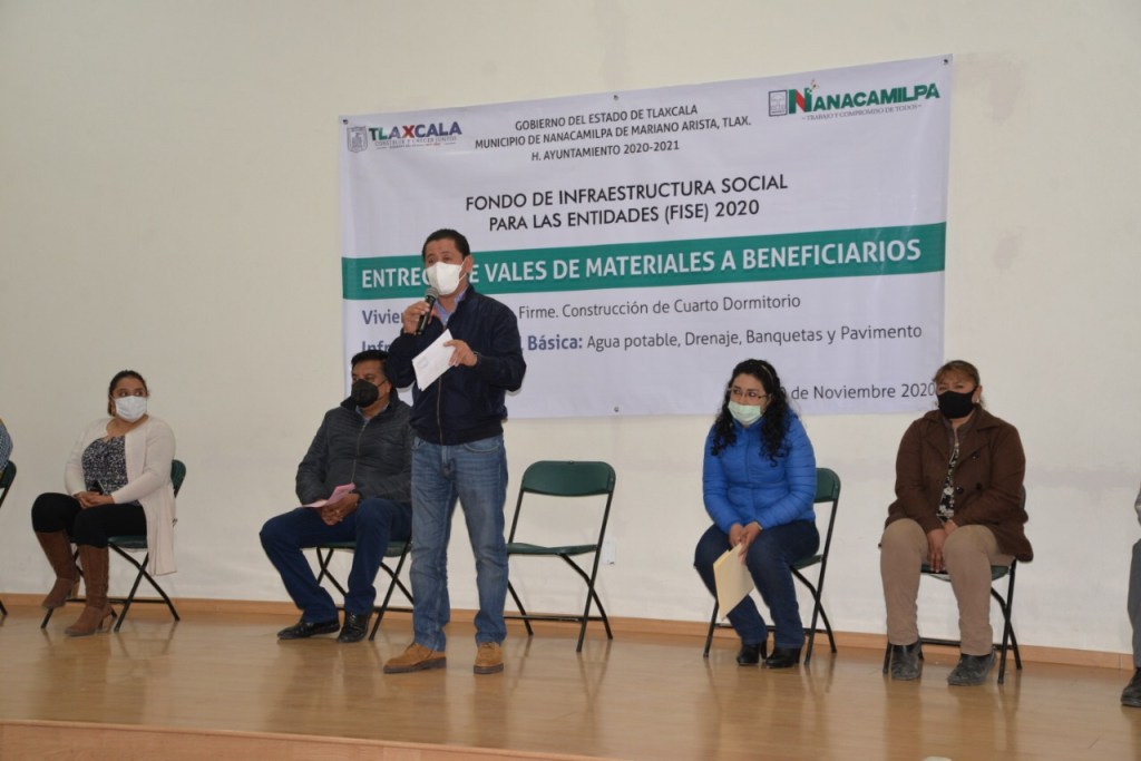 El pasado viernes, vecinos de Nanacamilpa fueron beneficiados con vales para la adquisición de materiales para mejorar piso u techo de su vivienda, así como para obras de agua potable, alcantarillado, banquetas y pavimento.
