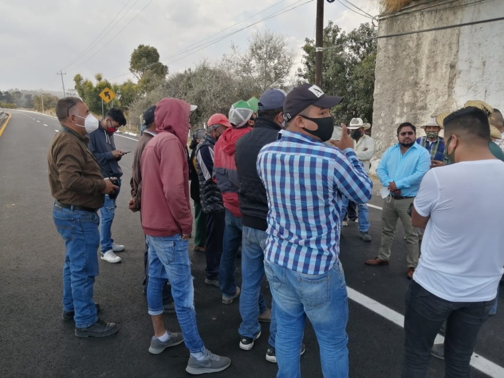 Alcalde de Panotla, Eymard Grande Rodríguez, acude a la zona de bloqueo de la autopista Tlaxcala-Texmelucan para dialogar con vecinos de Acatitla.
