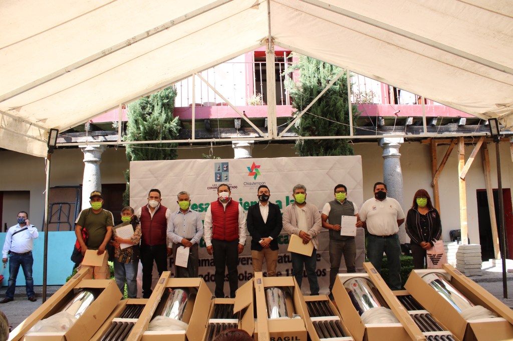 El Presidente Municipal de Chiautempan Héctor Domínguez Rugerio en compañía del Secretario del Ayuntamiento Nicolás Gutiérrez De Casa, hicieron entrega de calentadores solares totalmente gratuitos con el fin principal de apoyar la economía de las familias Chiautempenses así como incentivar al uso de energías limpias.