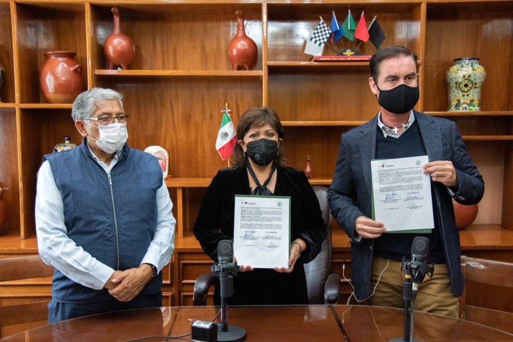 La alcaldesa, acompañada del síndico municipal Héctor Martínez García, dijo que esta importante firma de trabajo conjunto representa un apoyo significativo para quienes trabajan en la administración municipal, pues tiene el objetivo de brindarles nuevas oportunidades educativas que les permita crecer profesionalmente.