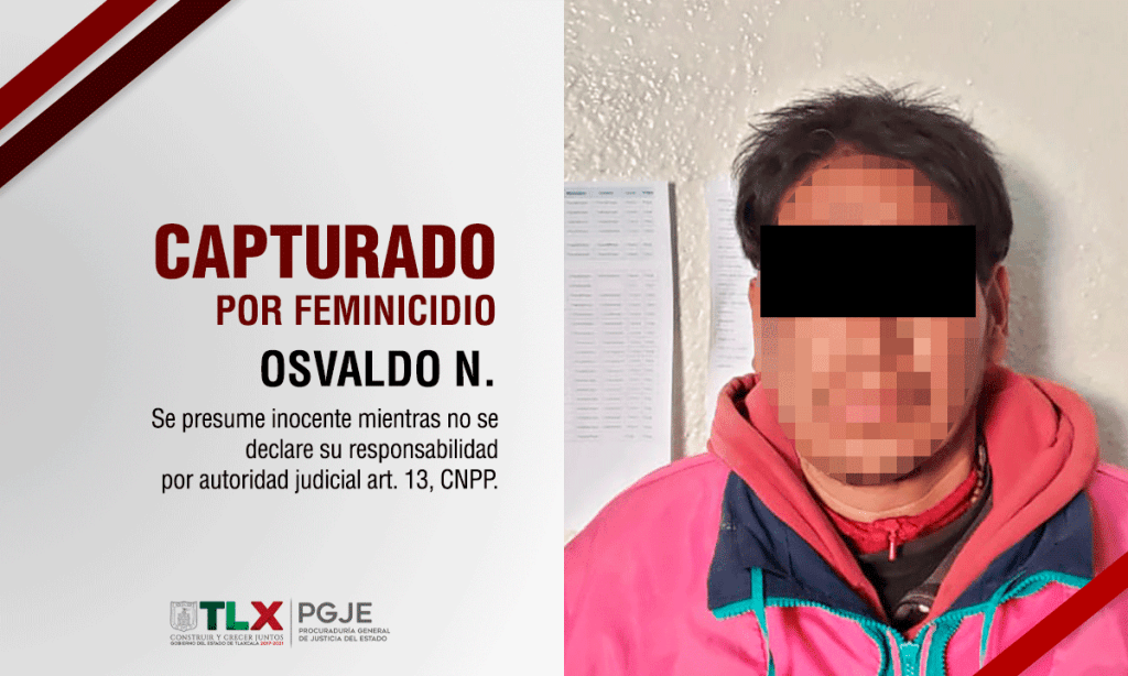 La Procuraduría General de Justicia del Estado (PGJE) a través de la Policía de Investigación cumplimentó una orden de aprehensión en contra de Osvaldo N., por su probable participación en el feminicidio de su madre, en el municipio de Santa Cruz Tlaxcala.
