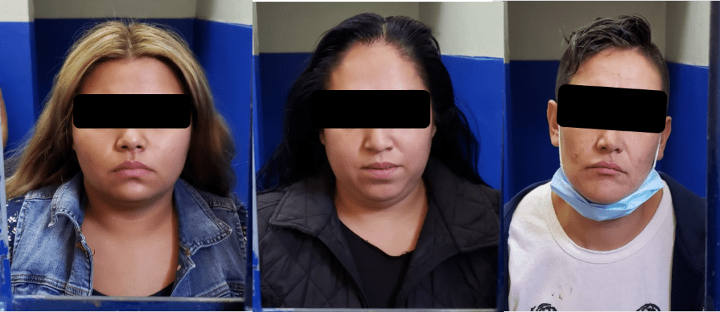 Las mujeres que responden a los nombres de Karla Irene N. de 25 años de edad, Maricela N. de 29 años de edad y Anayeli Lucero N. de 34 años de edad, oriundas del Estado de México y de la Ciudad de México, fueron detenidas y puestas a disposición ante la Procuraduría General de Justicia del Estado, para su debido Proceso.