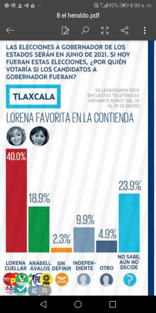 Por lo pronto Lorena Cuéllar lleva ventaja descomunal de más del 20 por ciento en la intención del voto.