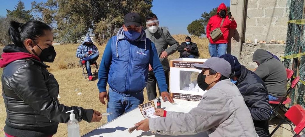 Este domingo 14 de febrero de 2021, ciudadanos de la comunidad de San Mateo Huexoyucan, perteneciente al municipio de Panotla, llevan a cabo el proceso de elección de presidente de comunidad por «usos y costumbres», en una jornada electoral celebrada en paz y sin contratiempos.