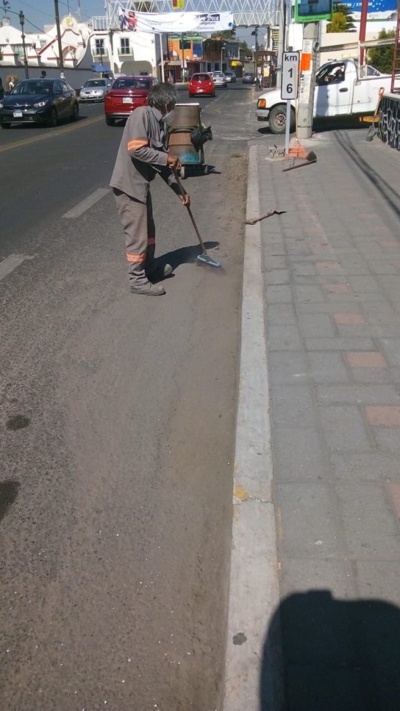 De manera paralela, se realiza el deshierbe y limpieza de la carretera Federal Tlaxcala-Puebla, donde también se hizo limpieza exhausta al interior y exterior de la calle para efecto de evitar inundaciones posteriores y posible foco de infección por la acumulación de basura.