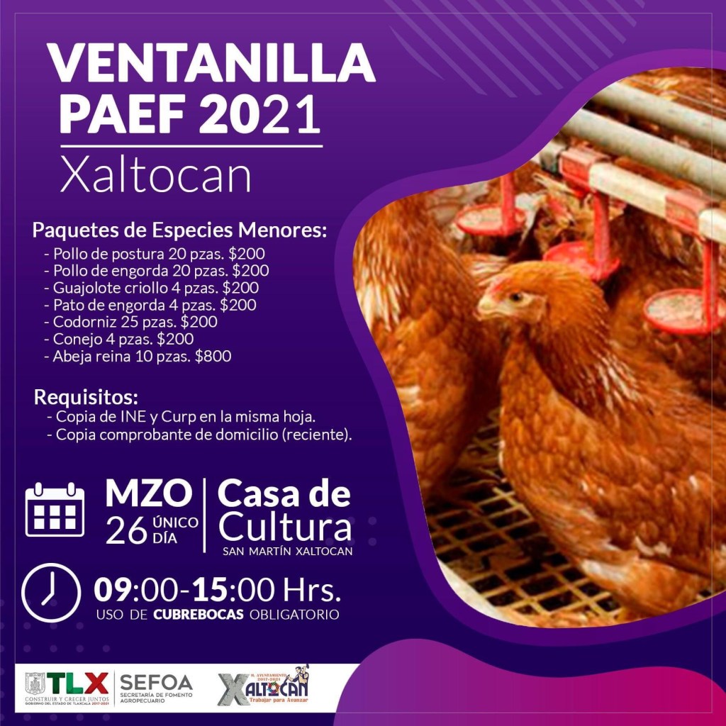 Es por ello que se invitó a toda la población xaltoquense interesada en adquirir Paquetes de Especies Menores, a acudir a la presidencia municipal.