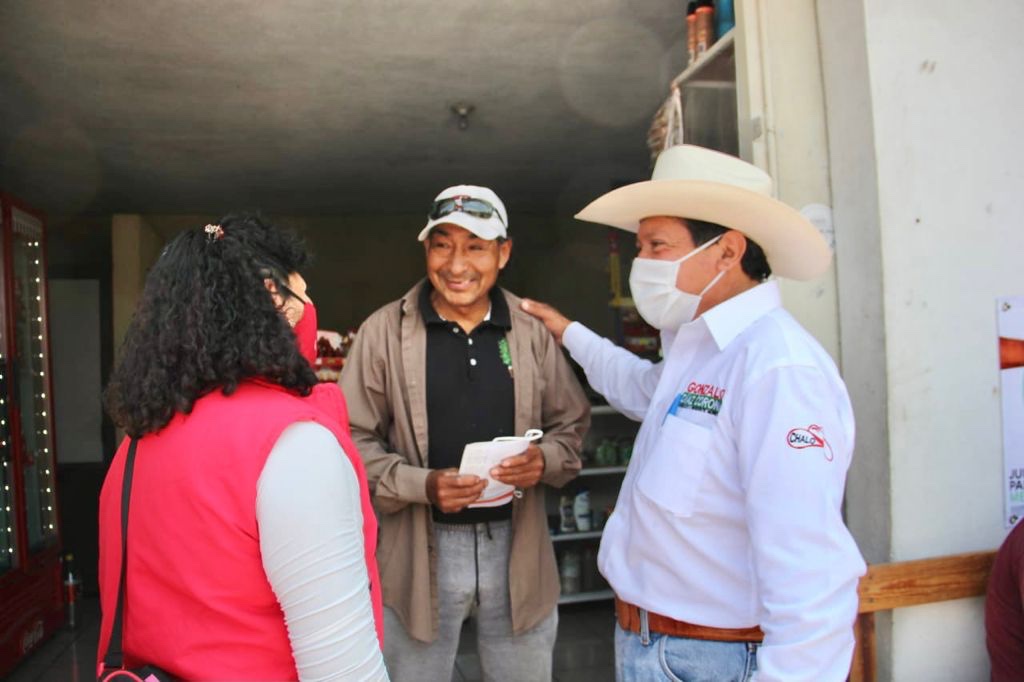 Gonzalo Díaz Corona camina en toque de puertas con la sencillez que le caracteriza, seguido de un gran equipo que, como él, comparte el deseo de volver a ser grande a Zacatelco.