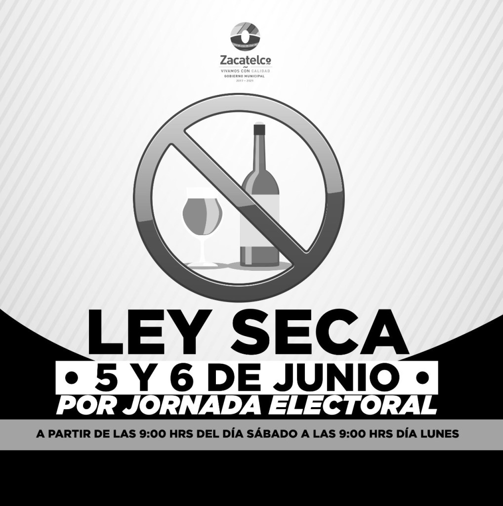 El Ayuntamiento de Zacatelco informa que como lo establece el Gobierno del Estado, se implementa la Ley Seca en todo el municipio, con el objetivo de garantizar paz y orden en la próxima jornada electoral, con la renovación de la totalidad de los cargos públicos en el Estado.