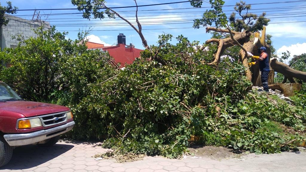 Ante las constantes lluvias que se han registrado, elementos de Protección Civil del Ayuntamiento de Xicohtzinco realizaron un operativo de supervisión para valorar posibles afectaciones en la comuna, resultado de ello ha sido la caída de un árbol en la calle Guerrero, ubicada en la sección tercera.