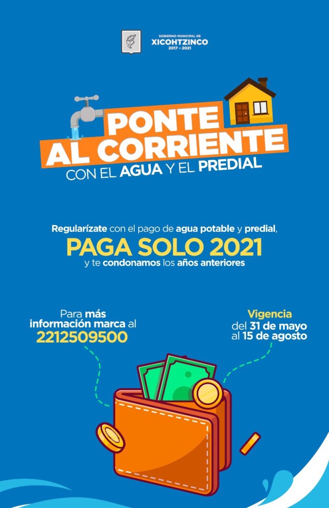 El Gobierno de Xicohtzinco a través de la dirección de agua potable y alcantarillado, así como predial invita a la ciudadanía a regularizar sus pagos, realizando un único pago anual por todos los que deban en ambos servicios.