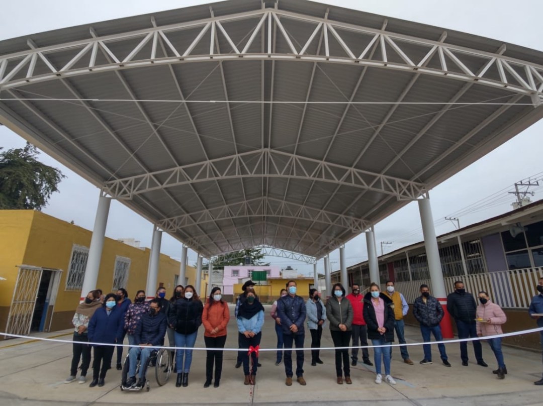 En esta ocasión hizo entrega a padres de familia la construcción de una techumbre en la explanada de la Escuela Primaria Francisco González Bocanegra, en la comunidad Miguel Lira y Ortega, del Fondo para la Infraestructura Social Municipal (FISM) 2021.