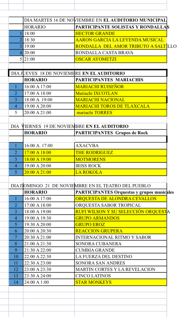 Este año se tiene confirmada la asistencia de agrupaciones de Costa Rica, Perú y Colombia además de otros estados del estado como: Tlaxcala, Hueyotlipan, Ixtenco y por su puesto, Contla que ya es conocida como la capital de la música.