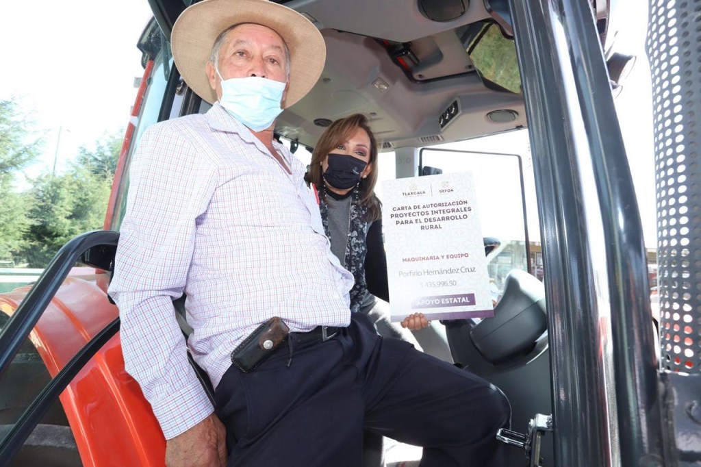 La gobernadora Lorena Cuéllar Cisneros entregó maquinaria, equipo y apoyo de contingencias climatológicas a productores agropecuarios en la comunidad de La Magdalena Soltepec del municipio de Tlaxco, con una inversión superior a 4.8 millones de pesos, con el objetivo de recuperar la capacidad productiva, fortalecer el crecimiento económico y la seguridad alimentaria para un bienestar social.