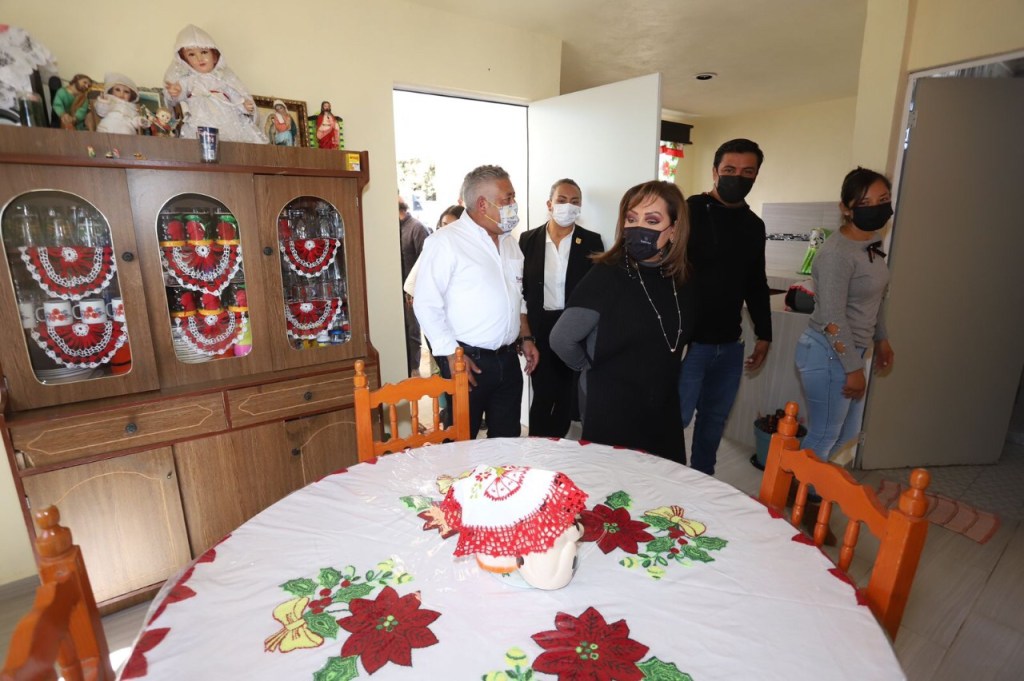 Previo al evento, la titular del Ejecutivo, acompañada del alcalde Agripino Rivera Martínez y del diputado local, Jaciel González Herrera, visitó las casas de dos familias beneficiadas, quienes agradecieron el apoyo de las autoridades.