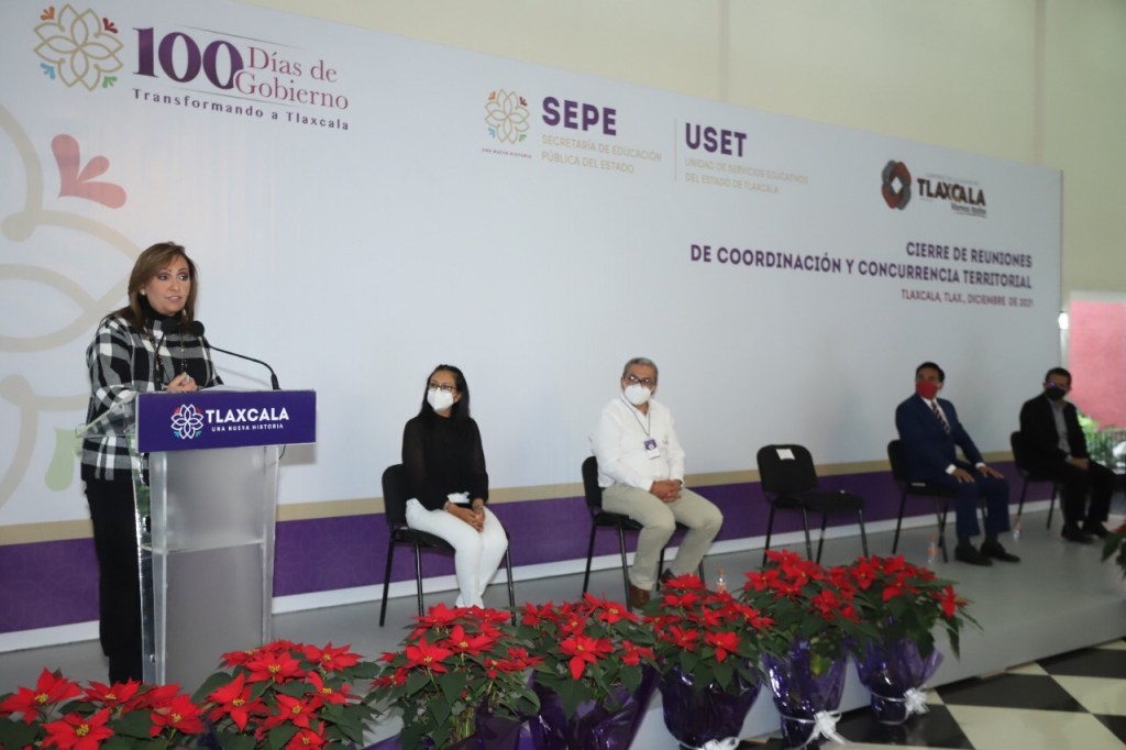 La gobernadora Lorena Cuéllar Cisneros encabezó el Cierre de Reuniones de Coordinación y Concurrencia Territorial de Educación en la entidad, además fungió como testigo de honor en la firma de acuerdos entre la Secretaría de Educación Pública del Estado (SEPE) y el municipio de Tlaxcala, con el objetivo de impulsar acciones conjuntas que permitan mejorar las condiciones educativas en la capital.