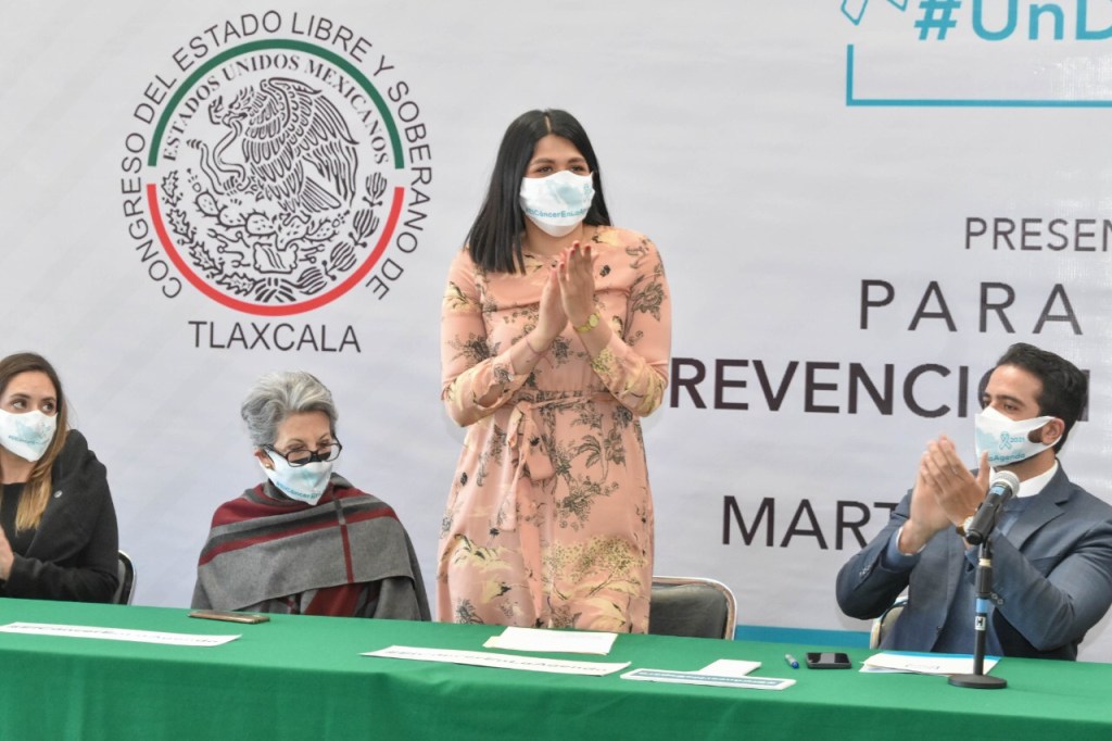Previo a la lectura de la iniciativa en la máxima tribuna del Estado, la diputada Diana Torrejón presentó en conferencia de prensa la agenda para promover la prevención oportuna, a través de “Un día Contra el Cáncer” en el Patio Vitral del Congreso del Estado, a fin de dar a conocer a la ciudadanía el proyecto para que mujeres y hombres puedan acudir sin pedir un día económico, vacaciones o permiso a las unidades de salud que les correspondan para realizarse los estudios de detección preventivos.