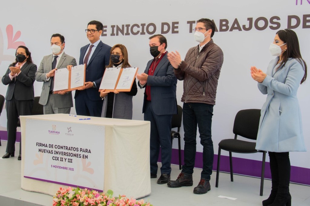 Para las inversiones, se realizaron las firmas de contratos de compra-venta de terrenos industriales, a fin de que las empresas Bissú Cosméticos S.A de C.V y Treck Plastik, expandan sus instalaciones en los parques de CIX II y III, ubicados en Huamantla y Tlaxco, respectivamente. Las compañías invertirán más de 10 millones de dólares en las nuevas edificaciones, con lo que prevén generar más de 500 empleos directos y mil 300 indirectos.