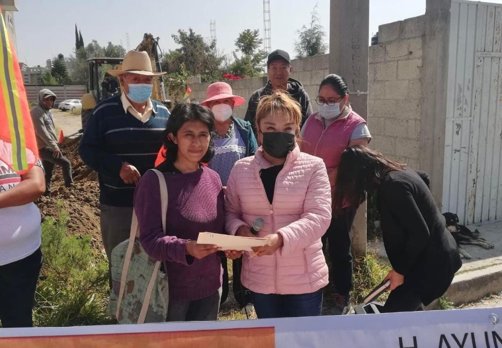 Posteriormente, Micaela Guzmán se trasladó a la calle 15 poniente, en donde puso en marcha la obra de ampliación de red de agua potable, con una meta de 278 metros lineales e inversión de 111 mil 371 pesos.