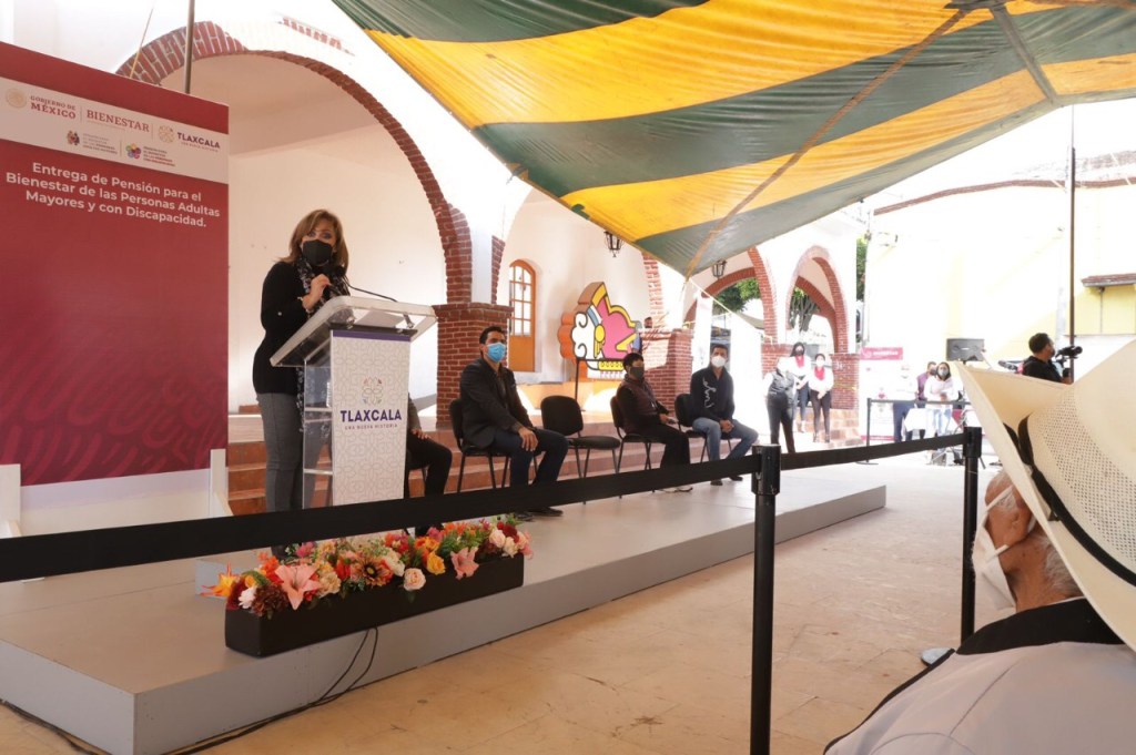 La gobernadora Lorena Cuéllar Cisneros atestiguó la entrega de 340 apoyos económicos correspondientes al programa Pensión para el Bienestar de las Personas Adultas Mayores y con Discapacidad en el municipio de Texoloc.