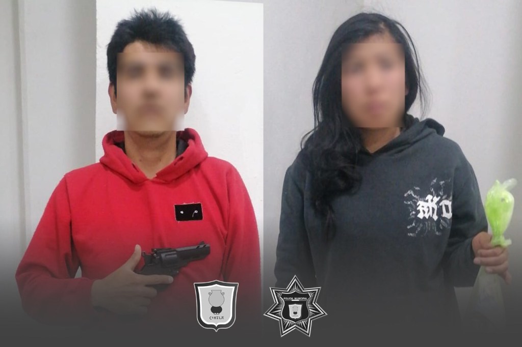En ese momento, elementos policiales tuvieron conocimiento del hecho por lo que se trasladaron de manera inmediata al lugar de los hechos, y se procedió a la legal detención de Guillermo N., de 29 años de edad, originario de San Martín Texmelucan, y de Maricela N., de 27 años de edad, originaria de la comunidad de San Miguel Xaltipan. Durante la detención, fueron asegurados los indicios del delito, el dinero que momentos antes habían sustraído, así como la réplica de un arma corta que fue utilizada para cometer el hecho delictivo.