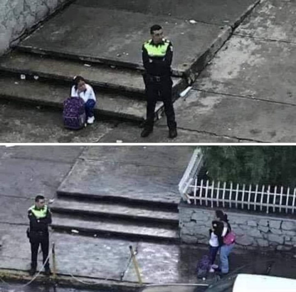 Fue en el 2017 que este policía recibió elogios por cuidar de una menor que se quedó afuera de su escuela esperando a que sus papás llegaran por ella.