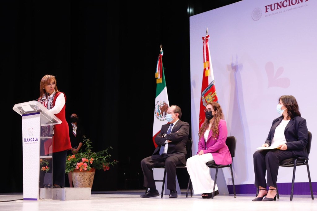 La gobernadora Lorena Cuéllar Cisneros acudió a la conferencia magistral “Los valores de la 4T en el quehacer diario del servidor público”, dictada por el secretario de la Función Pública del gobierno federal, Roberto Salcedo Aquino, organizada por la Secretaría de la Función Pública (SFP) de Tlaxcala, donde conminó a las y los funcionarios estatales a desempeñarse bajo los principios de la Cuarta Transformación para entregar buenas cuentas a la entidad.