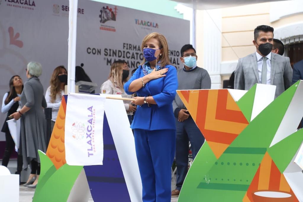 En la explanada del Museo de Arte de Tlaxcala (MAT) en la ciudad capital, la titular del Ejecutivo local mencionó que al signar el convenio se generan vínculos en beneficio de sus agremiados y se traduce en la promoción de la riqueza cultural, histórica, gastronómica y natural de la entidad.