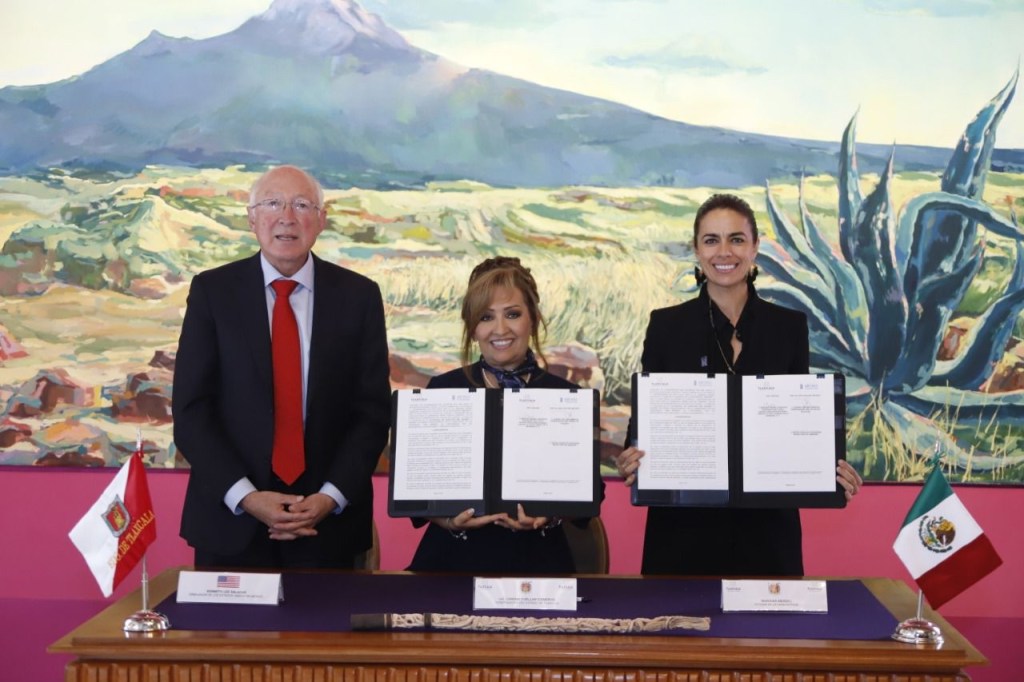 Con el objetivo de trabajar de manera coordinada en favor de las víctimas de trata de personas con fines de explotación sexual y en la prevención de la problemática en Tlaxcala, la gobernadora Lorena Cuéllar Cisneros y la directora de la Asociación Nacional contra la Trata Humana en la Sociedad (Anthus), Mariana Wenzel, firmaron un convenio de colaboración, en el cual fungió como testigo de honor el embajador de los Estados Unidos en México, Kenneth Lee Salazar.