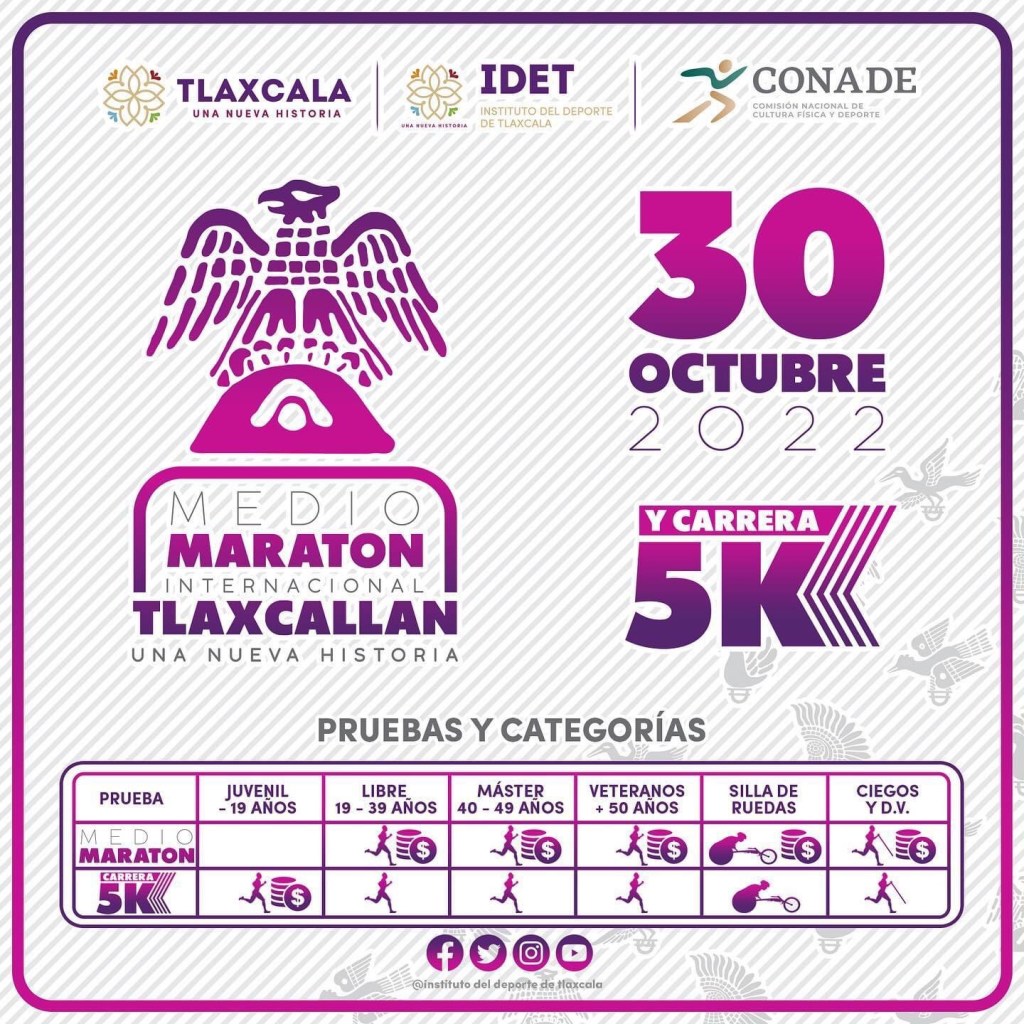 Con el objetivo de posicionar a Tlaxcala como punta de lanza en materia deportiva en eventos de escala mundial, así como el fortalecimiento de la identidad por medio de justas deportivas que cautiven, el gobierno del estado, a través del Instituto del Deporte de Tlaxcala (IDET) en coordinación con la Comisión Nacional de Cultura Física y Deporte (Conade), realizará el Medio Maratón Internacional Tlaxcallan, el cual tendrá lugar el próximo 30 de octubre y recorrerá las principales calles de la capital.