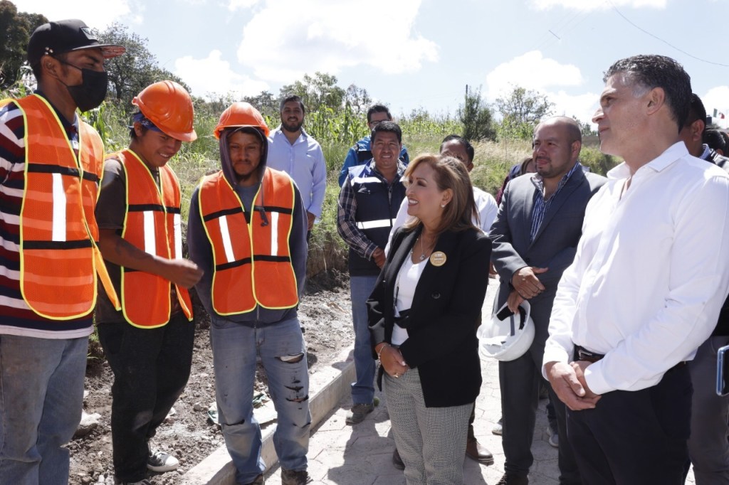 Acompañada del secretario de Infraestructura, Alfonso Sánchez García, autoridades municipales y vecinos, la mandataria estatal recorrió la zona para constatar la calidad de los trabajos; ahí, refrendó su compromiso de llevar más obra y acercar los programas sociales a los 60 municipios del estado para generar mayor bienestar entre la población tlaxcalteca.